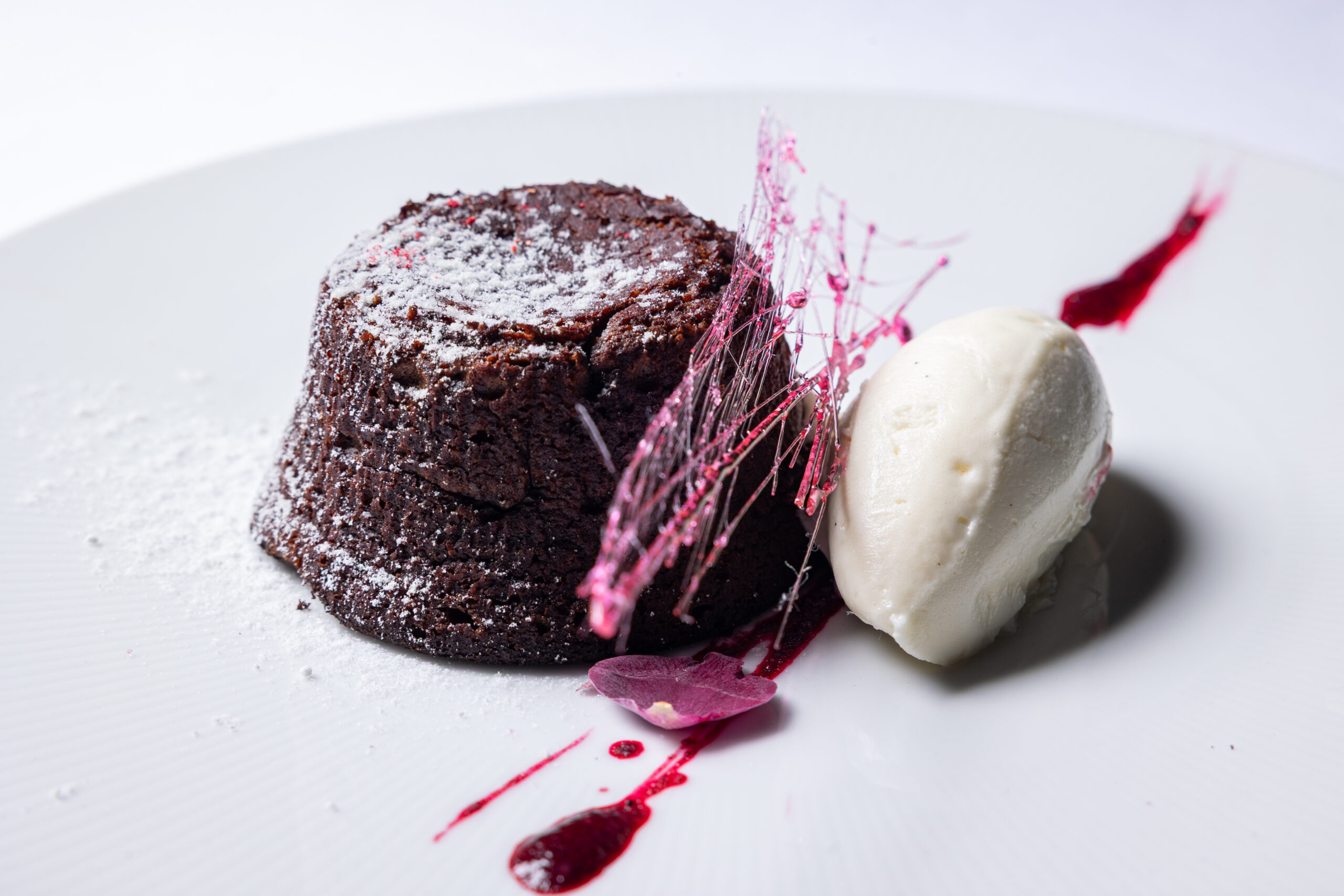 Vanilla bean ice cream, Morello cherry coulis